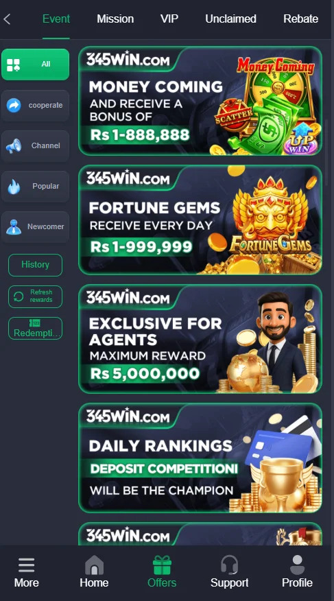 345win Games supports multiple languages to cater to diverse users across Pakistan. You can easily switch between languages from the settings menu anytime. This feature makes the platform accessible to people who prefer regional languages. Language support ensures everyone can enjoy gaming comfortably in their preference.