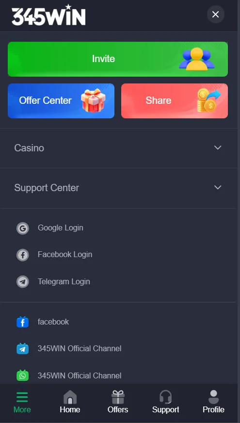 | Open the app | Launch the 345win application on your mobile phone or computer device. |